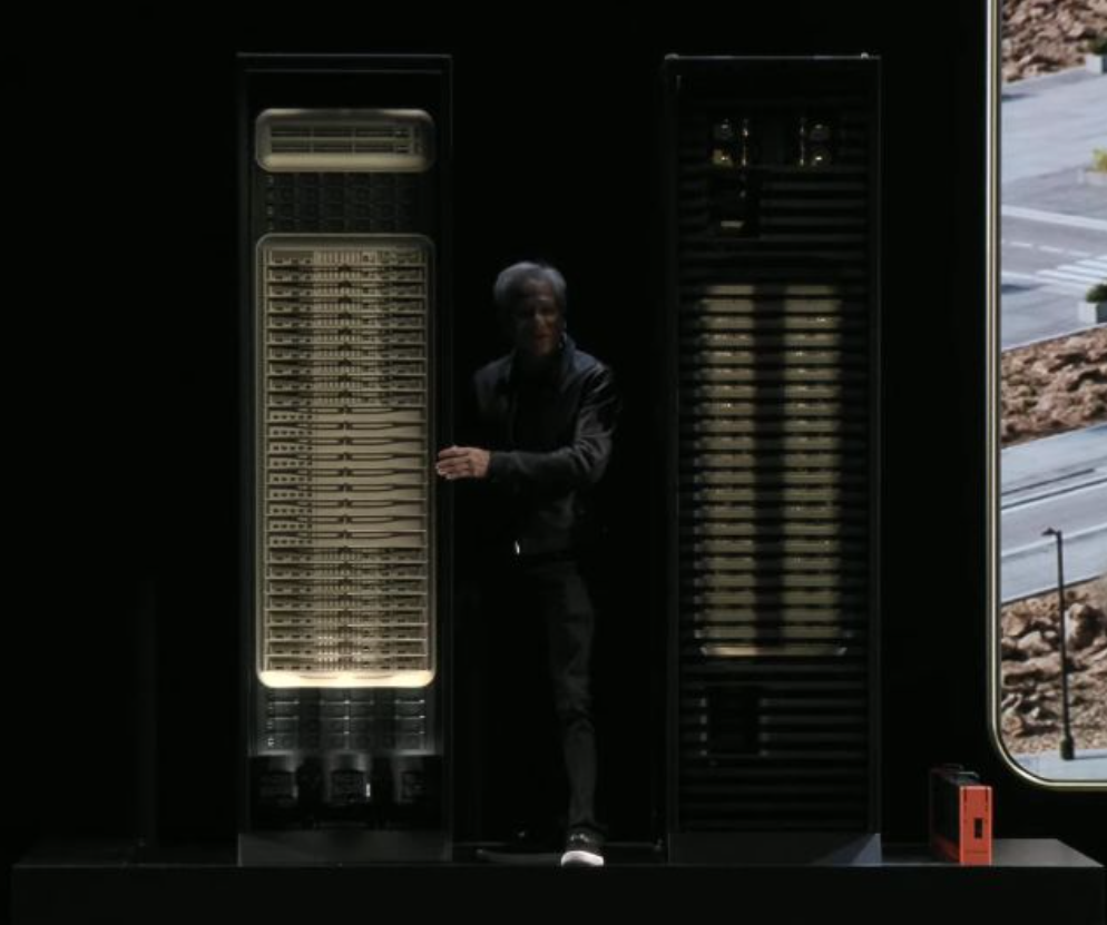 非常凑巧宏牛操盘,英伟达CEO黄仁勋上周给投资者们展示了最新款的液冷机架,并表示单单1吉瓦的算力就需要8000个这样重达两吨的大家伙。